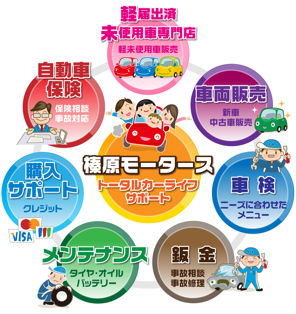 ご購入後のお車に関するご相談もお任せ下さい。 榛原モータースではこちらの拠点に約20名のスタッフを配置し、お車のご購入後もきちんとサポート致します。 ご購入後のお車に関するご相談もお任せ下さい。 お車は継続的なメンテナンスが必要です。日々の点検、車検や気になる点など、どんなことでもご相談ください。 また整備工場に加えて、鈑金工場も併設しているため、万一の事故後の修理や保険対応なども万全のバックアップ体制を整えております。